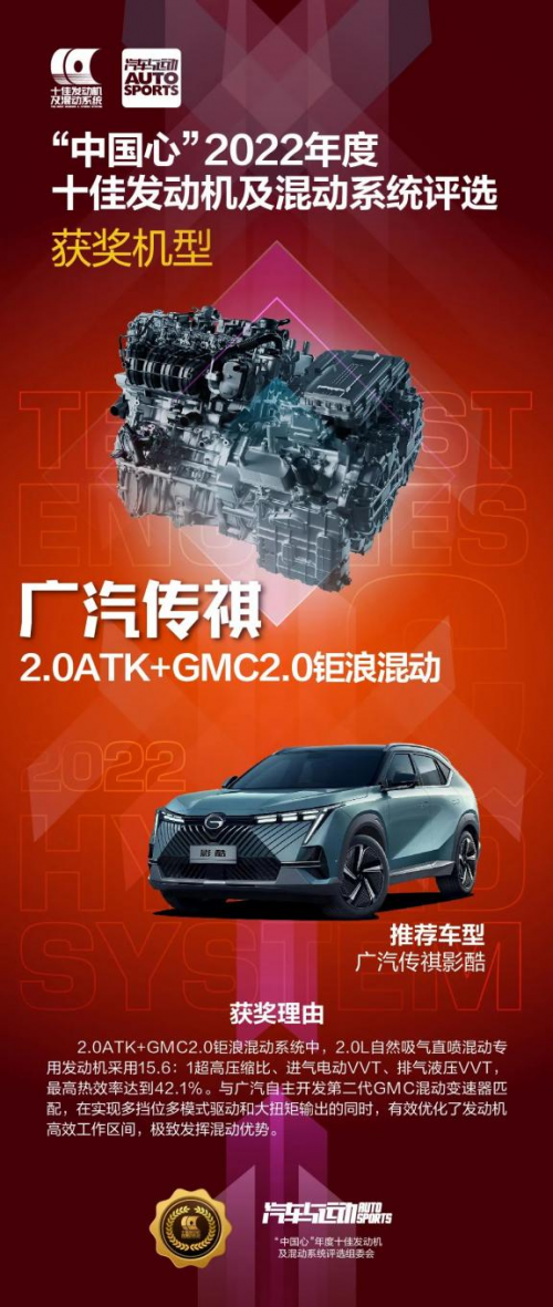 (广汽传祺2.0ATK+GMC2.0钜浪混动荣获十佳发动机及混动系统称号)