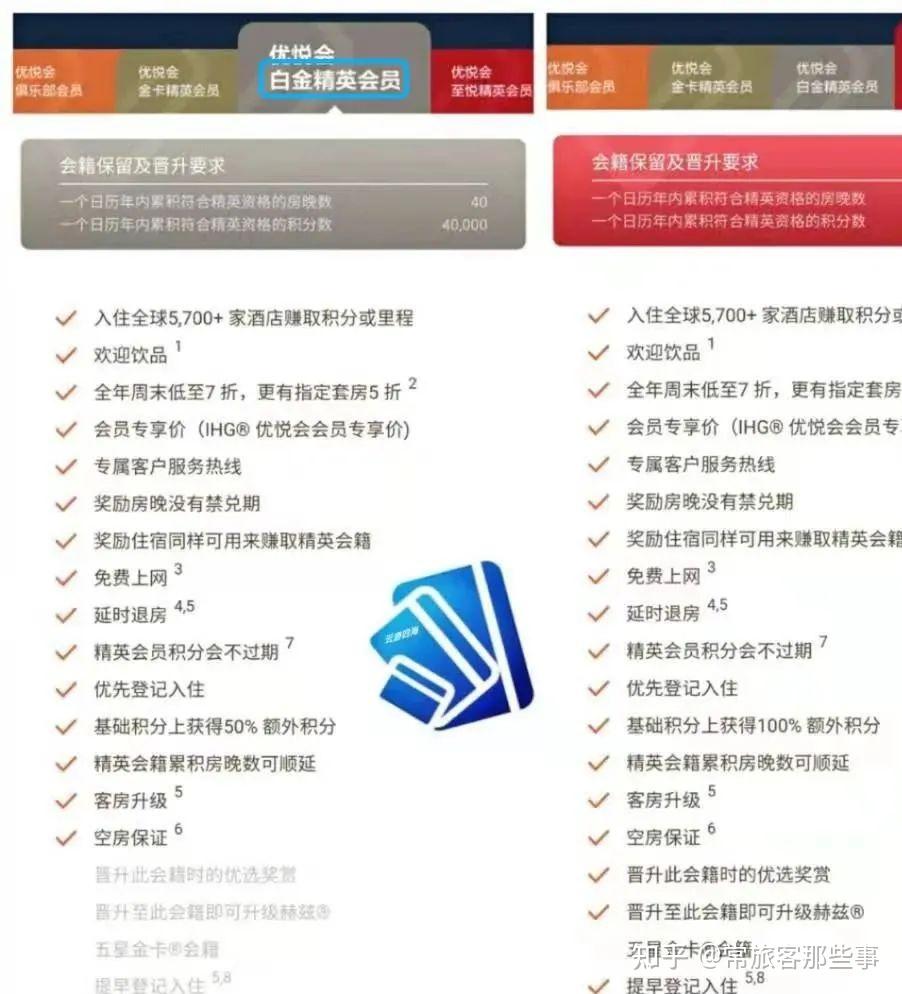 第二种、洲际其他品牌中执行的是另外一种会员体系,也就是我们常说的白金卡或者至悦会员。