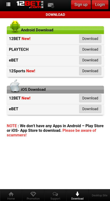 With all that talk on Android, there is still no mention of support for apple devices. The platform also provides a 12bet application for iOS devices. Unlike its Android counterpart, this one is easily found on the playstore and has similar features to its Android counterpart.