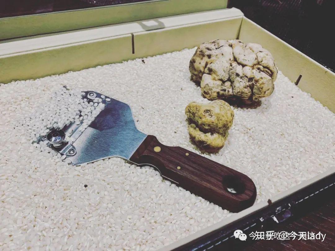 我记忆比较深的是白松露配蛋。服务生端出一个巨大且精致的盒子,里面装着一块硕大无比的白松露。