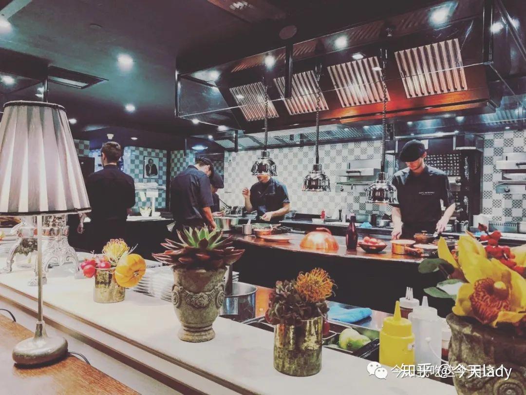 我和小伙伴坐的位置,是吧台区,可以看到开放式厨房里厨师们帅气的身影。